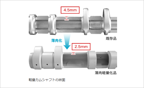 「カムシャフト」×「軽くする技術(中空化・薄肉化技術)」