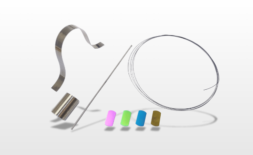 棒材、パイプ材、箔材や、最小径Φ20㎛の線材など様々な形状での加工が可能