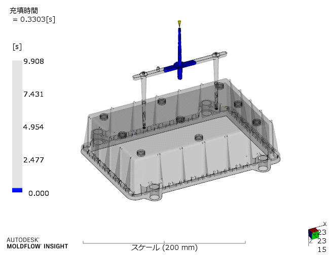 We are developing large resin cases aimed at replacing aluminum die-cast cases with resin cases. The aluminum plate insert resin case is a composite case that addresses the weaknesses of resin cases: case strength, EMI suppression, and heat dissipation performance. The inverter components for electric vehicles are complex-shaped parts that bring out the excellent moldability of resin materials, and they are heat dissipation countermeasure components that combine various elemental technologies. We have introduced an injection molding machine of 600-ton class mold clamping force for development use and are now advancing the development of large resin cases.