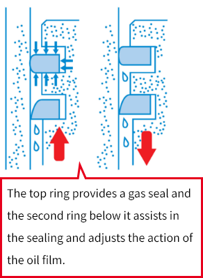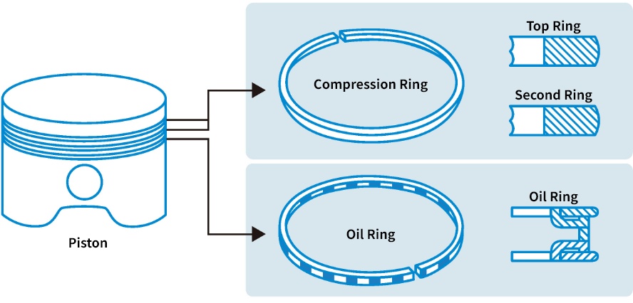 ・Piston rings ensure airtightness by contacting the cylinder wall while the piston moves up and down.
