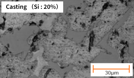・Exhibits higher rigidity than conventional aluminum alloys due to the addition of large amounts of Si and transition metals (Fe, Ni, etc.)