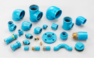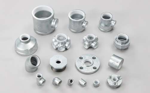 ねじ込み式可鍛鋳鉄管継手または20K継手の外面に樹脂を被覆した継手です。消火用外面被覆鋼管とあわせて使用し、消火埋設配管における外面防食を目的とした継手です。(10K型・20K型の2種類があります。)