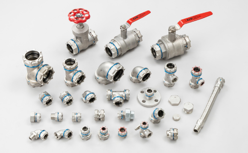 LAカップリング/グリップLAは、管にねじを切らずに直接ぼうず管を接続できるメカニカル継手です。LAカップリングについては昭和32年に販売以来、各地の水道局、ガス会社、建設会社などで使用され好評を得ています。