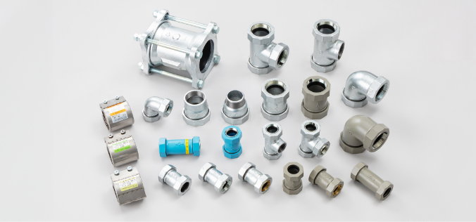 給水や冷却水を想定した継手のため、耐熱用の塩化ビニル管、塩化ビニルライニング鋼管には使用できません。